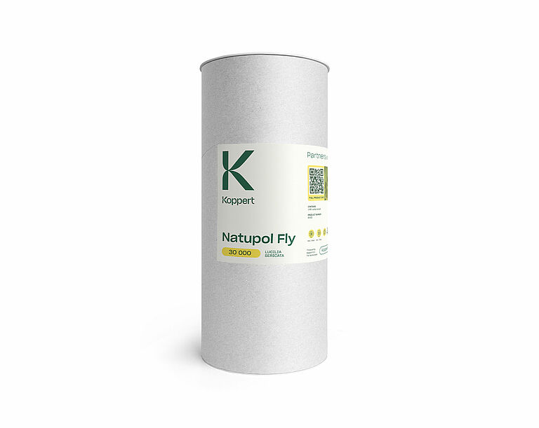 Natupol Fly är förpackad i ett papprör med plastlock. Flugpupporna blandas med sågspån för att minimera värmeproduktionen och öka fukt- och luktabsorptionen. Den ändamålsenliga förpackningsmetoden för Natupol Fly ger