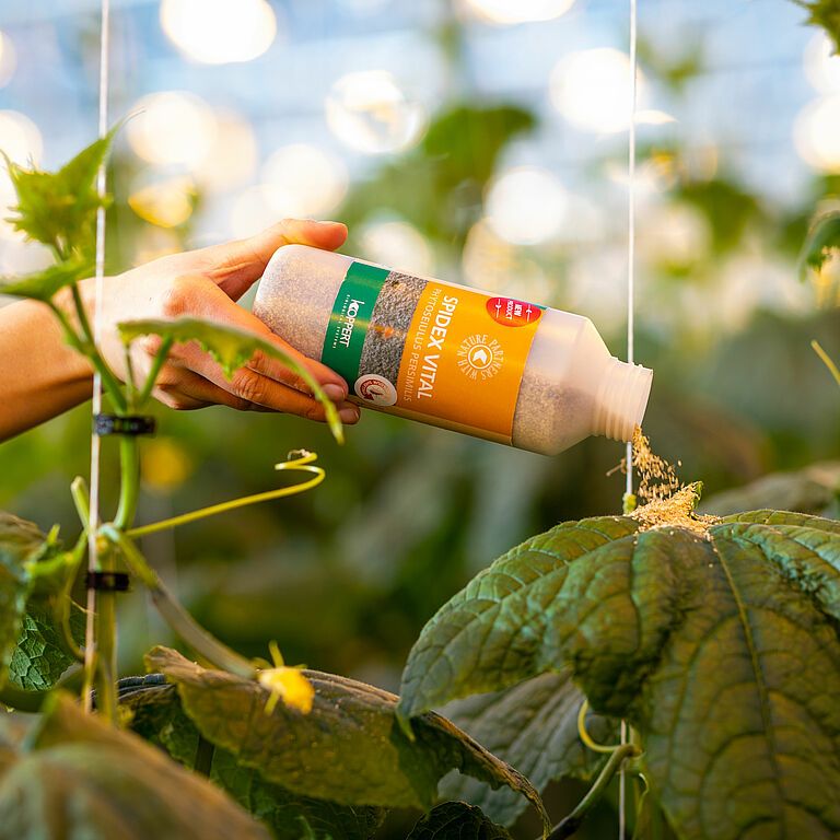 Vår förbättrade sammansättning ser till att våra rovkvalster får en kraftfull start och är bättre rustade för att klara det erfordrade avståndet. I en flaska Spidex Vital finns en mer varierad populationssammansättning, så när den appliceras på hotspots följs de vuxna kvalstren av växande nymfer samt Spidex-ägg, som kommer att kläckas mitt ibland lämplig födokälla. Tillsammans ger dessa faktorer en ökad kontroll över hotspots i odlingen.