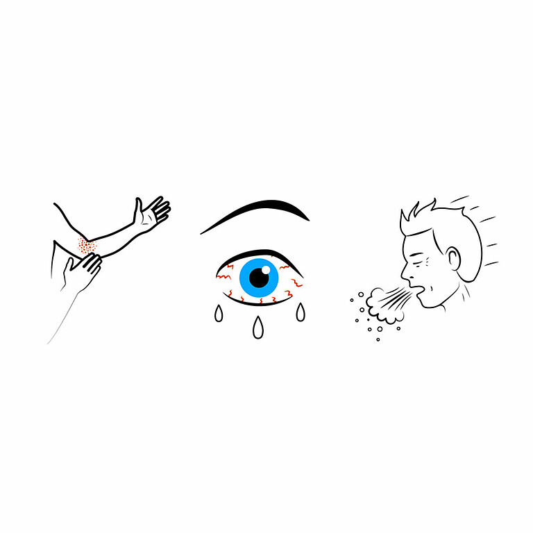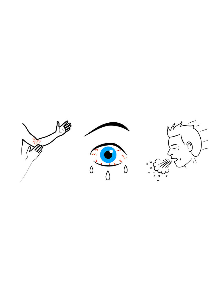 Jos kaikesta huolimatta joudut kosketuksiin edellä mainittujen tuotteiden ainesosien kanssa ja satut olemaan niille allerginen, saatat saada iho-oireita (esim. ihon punoitusta ja kutinaa tai allergista rohtumista), nenäoireita (esim. aivastelua, nenän vuotamista tai kutinaa) tai silmäoireita (esim. silmien kutinaa ja vuotamista).